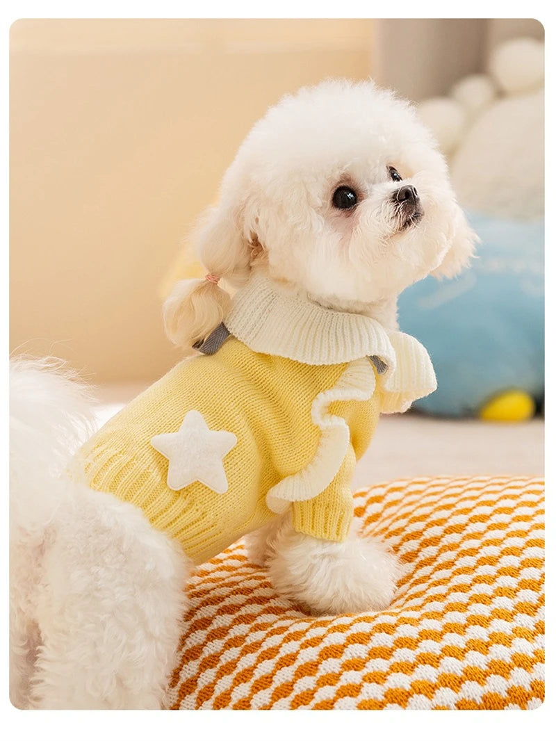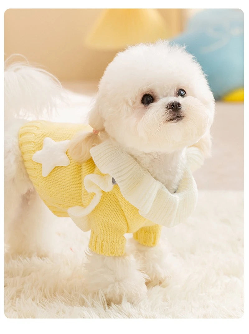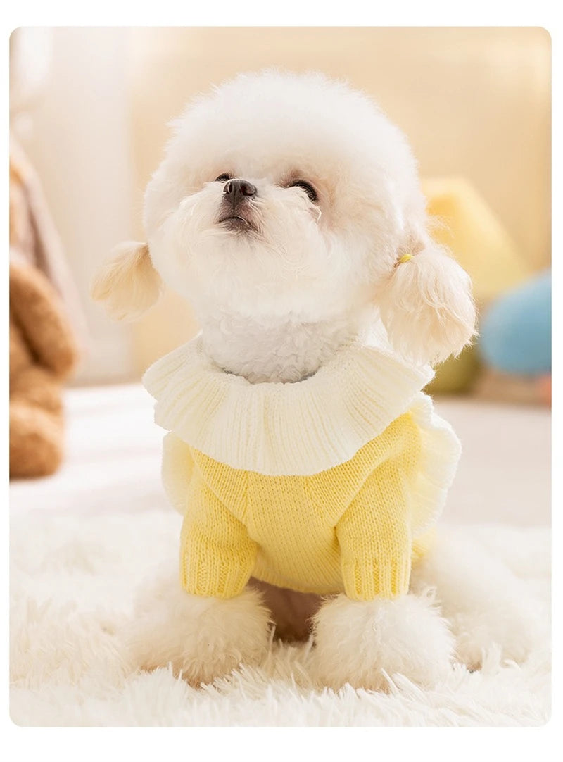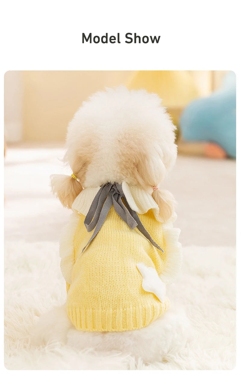 This Sweet Yellow Pet Sweater is made from soft wool knitting, designed to keep small and medium dogs warm and stylish. With an adorable bow tie and princess-style design, it's perfect for birthdays, winter outings, or cute everyday wear.